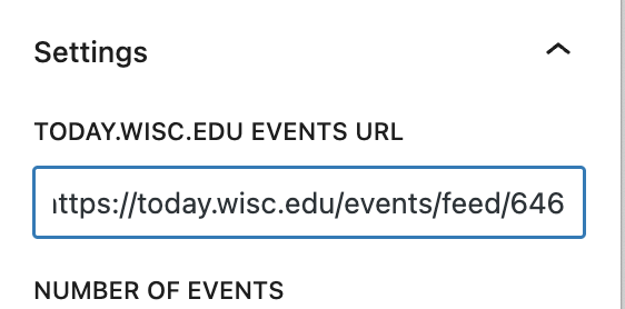 Paste the URL into the Today.wisc.edu Events URL field the block settings. The events will update after you click outside the field.